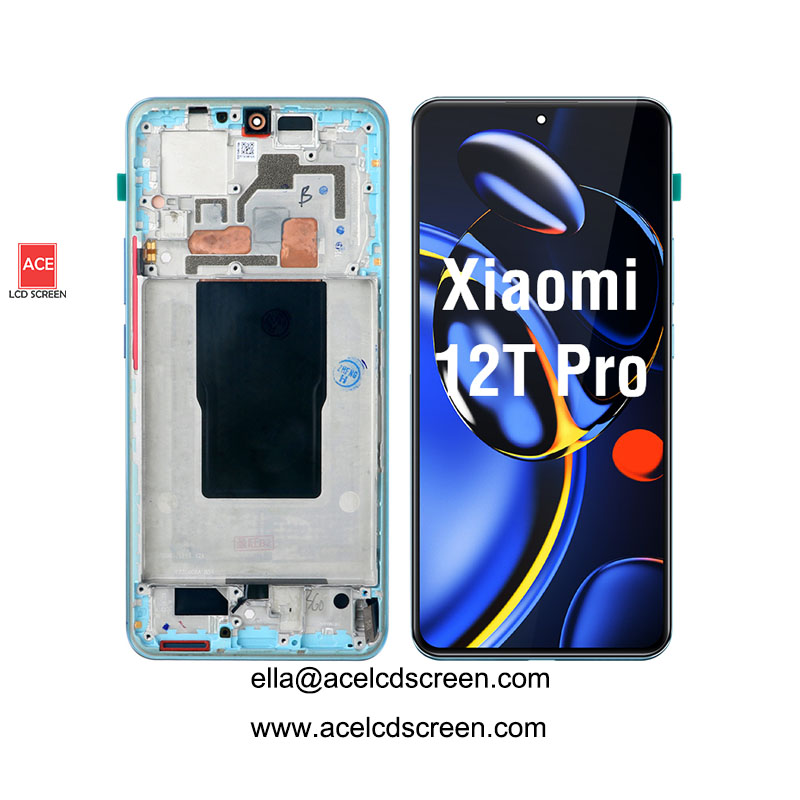 Genuine original OLED LCD display + touch screen digitizer full assembly for Xiaomi 12T Pro. With frame, 100% tested, MOQ 1pc, 1 year warranty, secure packaging. Factory direct wholesale.